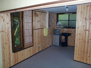 松下塾のオープンスペースにあるテーブルと椅子はオーナーの手づくり。
